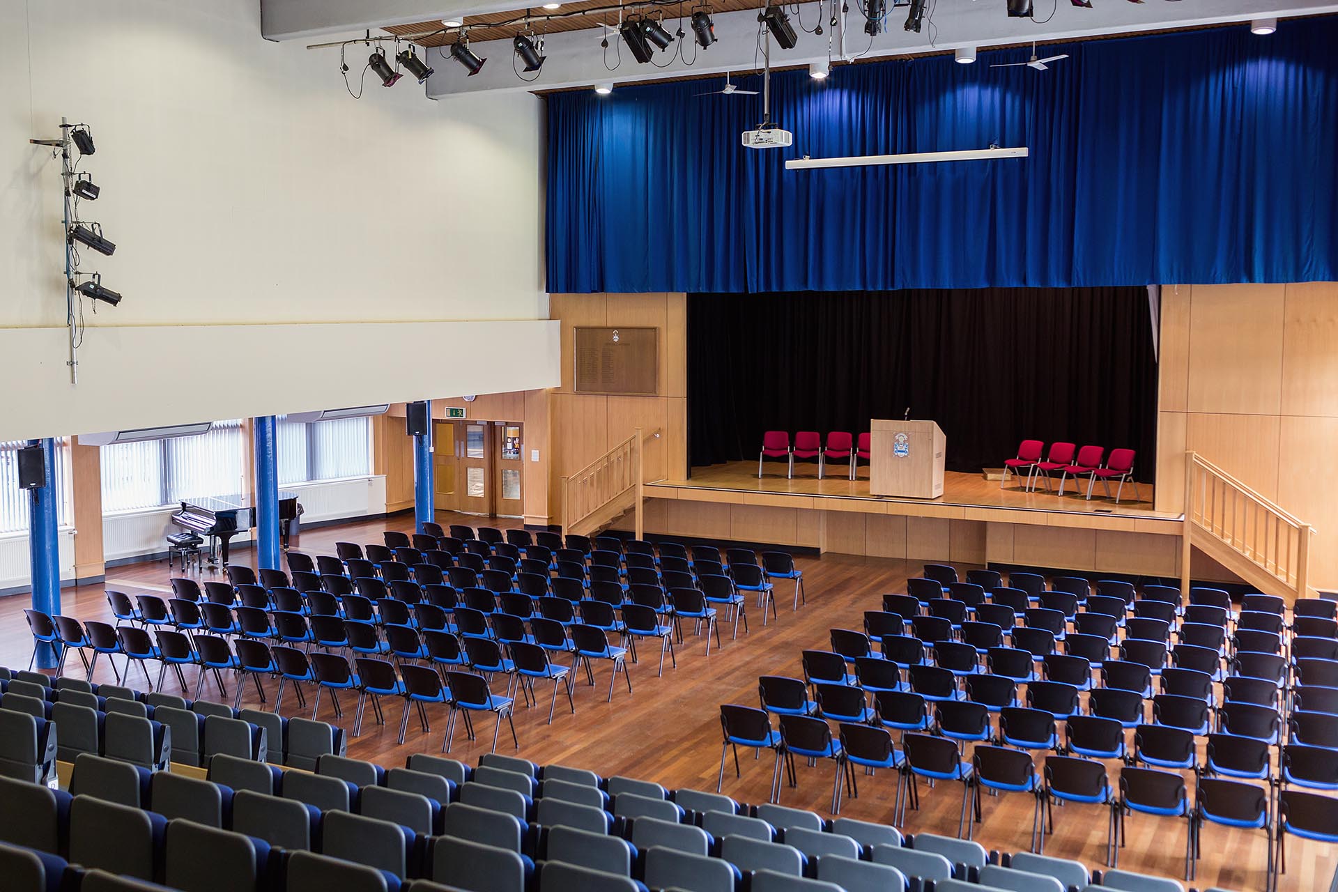 The school has a flexible suite of modern meeting rooms and auditoriums suitable for conferences, seminars and training days and can cater for all sizes – from small groups to larger companies.