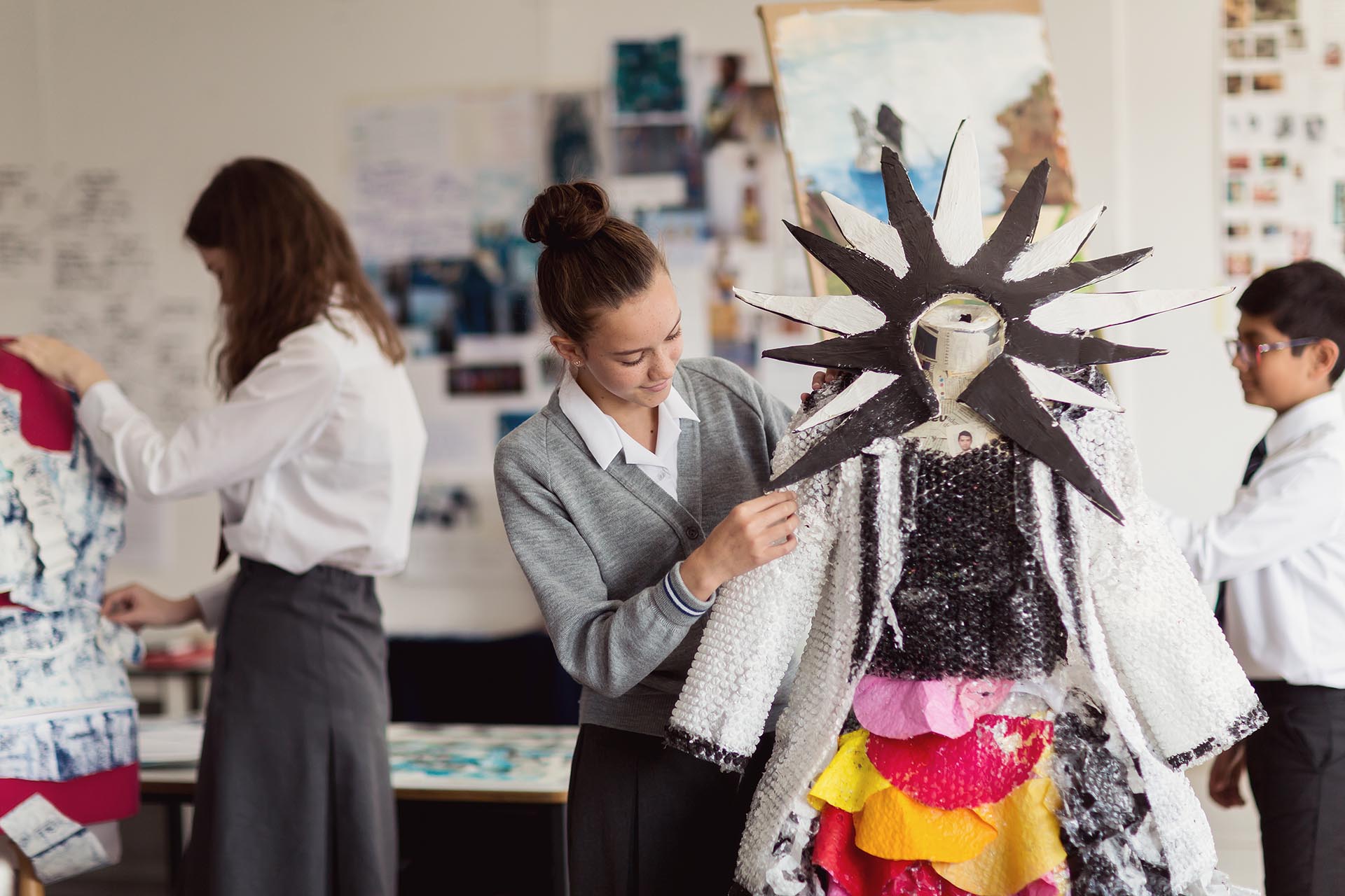 Collaboration is a key focus in the senior years and there are opportunities for learning to take place out with the formal timetable. S6 pupils are encouraged to attend Life Drawing at the Visual Arts Studio, based at the Tramway. The department runs workshops and talks with leading practitioners in the field of design, fine art and photography. As well as working closely with Glasgow Print Studio and Street level Photoworks pupils are encouraged to take part in national competitions and participate in lunchtime clubs.